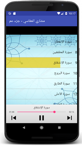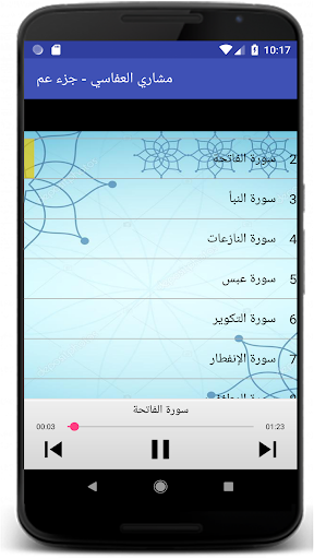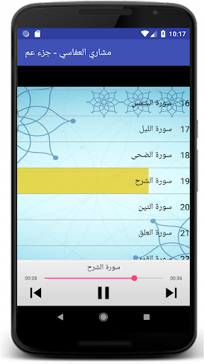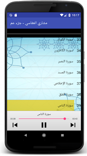 السلام عليكم ورحمة الله تعالى وبركاته يمكنكم هذا التطبيق من الاستماع لجزء عم للقارئ الشيخ مشاري بن راشد العفاسي برواية حفص المصنف من أحسن القراء في العالم و بدون استعمال الانترنت :