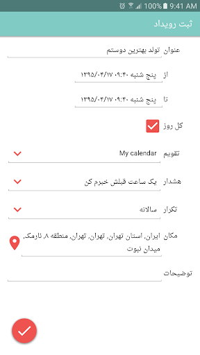 2. هماهنگي با تقويم گوگل و فيس بوك