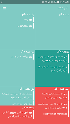 تقويم شمسي به همراه رخدادهاي رسمي جمهوري اسلامي ايران
