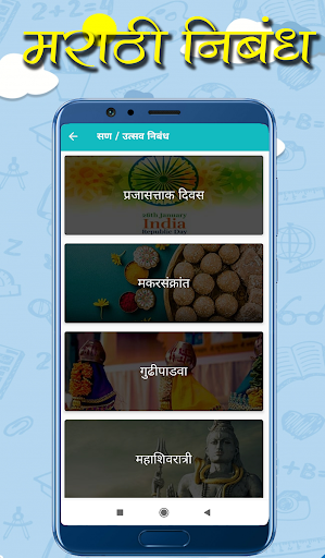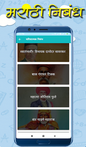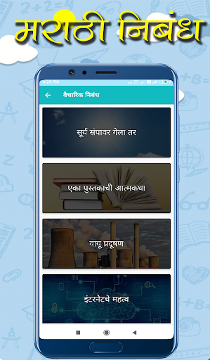 The best app for मराठी निबंध (Marathi Nibandh) lekhan. This app has covered all types of Essays in Marathi. This nibandh in the Marathi app is useful for all students as well as Teachers.
