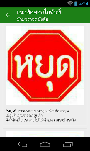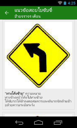 - คำอธิบายแผ่นป้ายต่าง ๆ ไม่ว่าจะเป็นป้ายเตือน ป้ายบังคับ เครื่องหมายบนทางพื้น