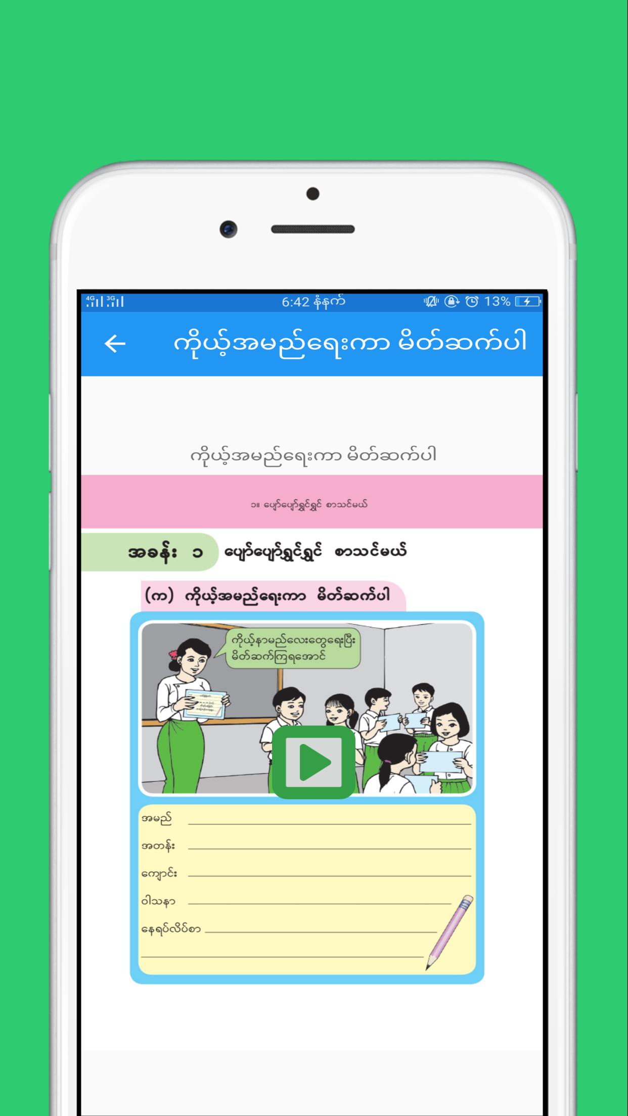 မြန်မာသံ ပီပီသသ အသံကို ကြားသိနိုင်ရန် ရည်ရွယ်ပါသည်။ ပညာရေးဝန်ကြီးဌာန၊ မြန်မာနိုင်ငံတိုင်းရင်းသားဘာသာစကား ဦးစီးဌာနက ဆောင်ရွက်ထားသော သင်ကြားရေး အထောက်အကူပြု Application ဖြစ်ပါသည်။