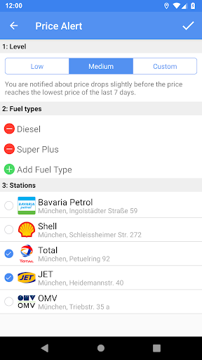 Find the cheapest petrol station in your area or along your planned route with the intuitive 1-2-3 Fuel app. With the automatic price message directly through the petrol stations, all prices are always up to date.