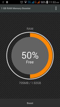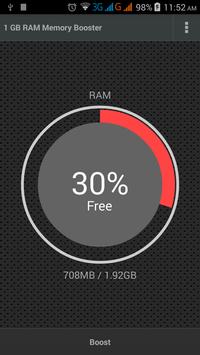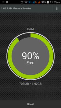 1 GB RAM Memory Booster is the best one tap solution for all who have problem with the free memory, with the multitasking, with slow swapping between apps, with slow gaming, with low performance or just want to improve the performance in all directions.