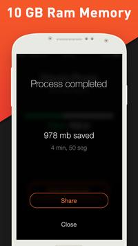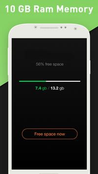 the strongest feature in "10 GB ram memory Cleaner" app release free ram by killing unused apps running in the background and freezeup larg apps from using extra memory expand, and clean cash automatically your phone will never slow down.