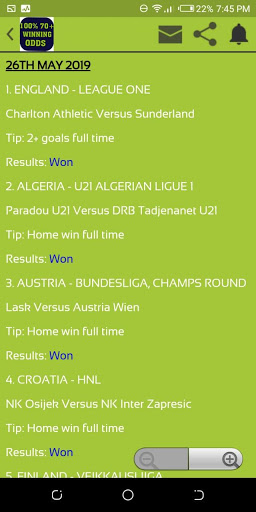This is the best prediction App Ever....I have won 2000 US dollars with a stake of just 5 dollars using its predictions...Keep up guys. You simply the best.