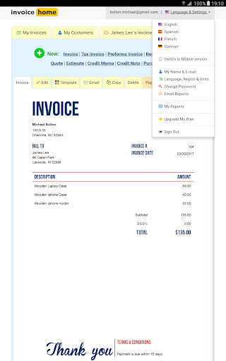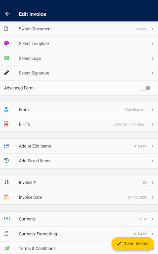 • Automatic syncing between the invoice maker and your Invoice Home account
