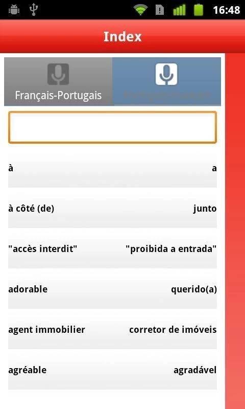 With this application from the collection of applivres 100% "all the right words," it will be very easy to quickly understand and abroad, with foreign language speakers. The application associated with phrasebook contains all essential words and phrases to deal with all situations abroad and an index and illustrations. Whether it's a short trip stay for business or pleasure, whatever the situation, this application contains a record for you and you can exercise to repeat to acquire the correct pronunciation. If you dare not even speak in a foreign language, so use it as a pocket-in interpreter and let your smartphone with the application speak for you! In any case ... do not forget to activate the loudspeaker of your telephone in advance!