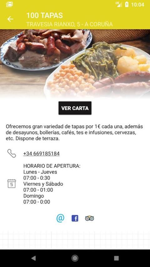 We offer a variety of tapas for 1 € each, plus breakfast, pastries, coffees and teas, beers, etc. It has a terrace.