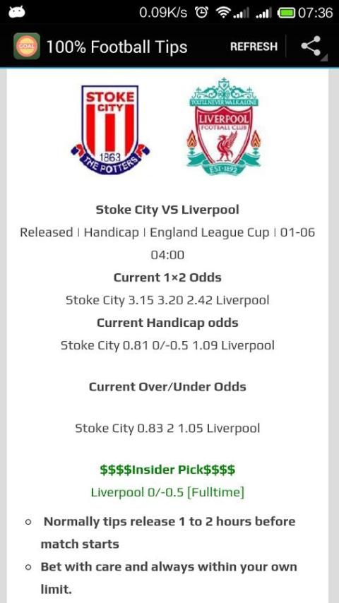 Football Tips is an app that provides soccer predictions. We are only reveal 1 to 3 betting tips DAILY, quality equal to profitability. Normally those soccer tips are reveal 1 to 2 hour before the match starts subject to tips availability, we will try to update it as soon as possible.