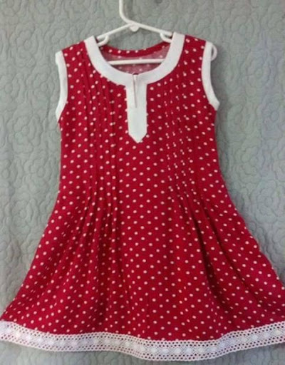 From the time a child is five until they are about twelve their little dresses should come just above their knees. The child should be able to stretch their arm down by their side and the tip of their middle finger should not be above the hem line of the garment. These dresses should be modest and cover all of the child's shoulders and chest area. Little girls do not have cleavage and their garments should not be designed like they do.1000 Baby Latest Frock Designs HD (Offline) Kids New Frock Designs