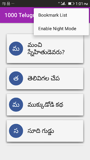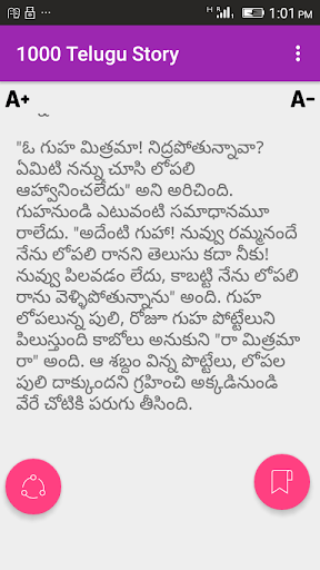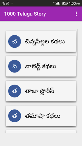 This application consists of Indian Telugu stories which are taught in school in houses and else where, we have kept in mind the following points to make it simpler for the user to interact.