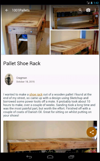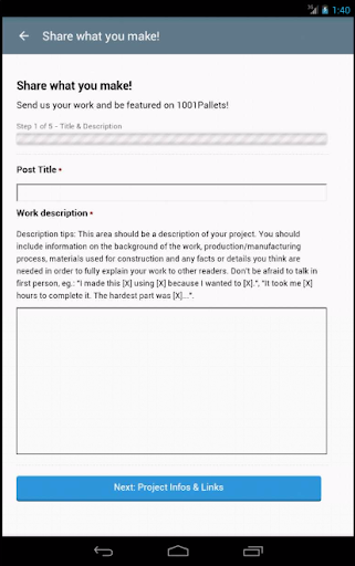 Since the beginning, we have wanted 1001Pallets.com to be open to everyone. Our ambition is to give exposure to as many recycling artists, crafters and small business owners as possible since it's very often what they lack the most. So if you have come up with a nice project using recycled pallets, do not hesitate to share it with us directly within the application.