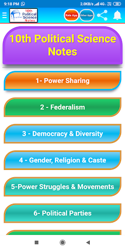 This app contains notes of Class 10th Political Science. These notes are based on the textbook of Political Science (Democracy & Politics) prescribed by the J&K State Board of School Education