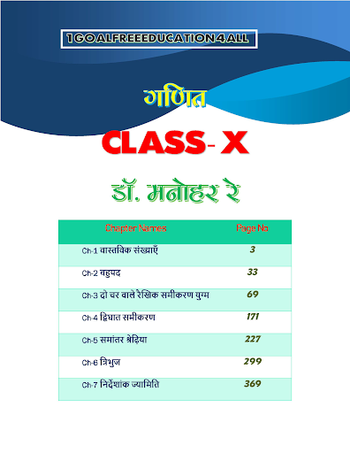 10th class maths solution in Hindi Dr. Manohar Ray Book app Included : (content)