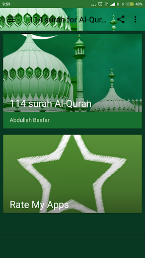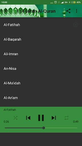 This application contains a 114 surah from Al-quran in mp3 format You can listen to all surahs from the Qur'an anywhere and anytime Easy to use and will not eat ram from your smartphone