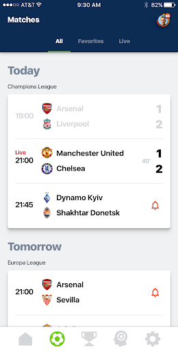 See how your teams are performing in international leagues like Champions League and Europa League