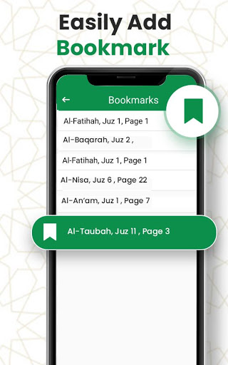With this Quran Majeed app you easily add Bookmarks for any page both in Surahs and JUZ Mode of 13 line Quran per page app. Save bookmarks easily by tapping/clicking bookmark icon given on the bottom navigation bar of this Quran reading app.