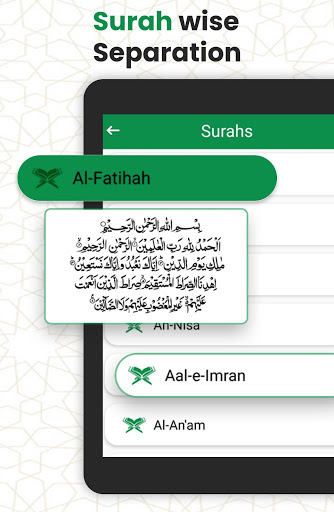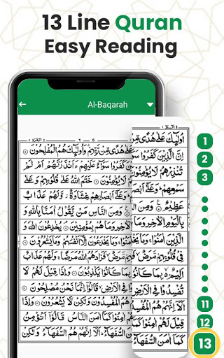 In Surah wise division, this Section of Quran reading helps to recite Quran in Surah/Surahs order. All 114 surahs From Surah Al-Fatiha to Surah Al NAS are added in the 13 line Quran app.
