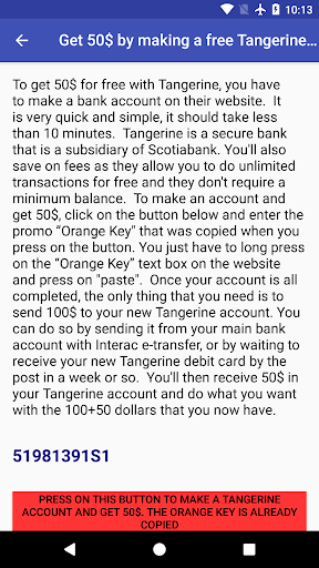 This app includes promo code from Tangerine (Orange Key), Booking.com, Coinbase and Airbnb