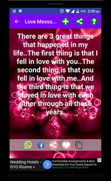 Share beautiful and heart-touching love filled messages with your loved ones on Social Networks, Chats, email, SMS, etc and make them fall in love with you once again. Enjoy the largest love message collections for every occasion on your mobile.