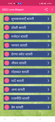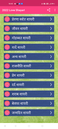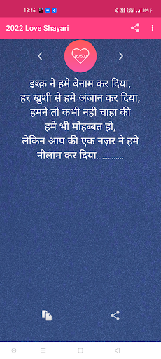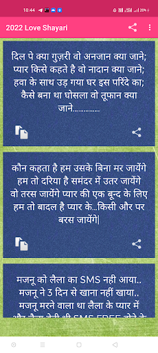 This app contains one of the latest collection of hindi love shayari 2023 .This is a complete app for all shayari category in just one place .It contains more than 5000 awesome shayari also this is completely offline .