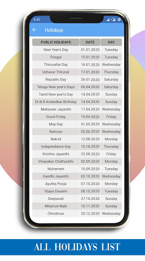 📅 Holidays List