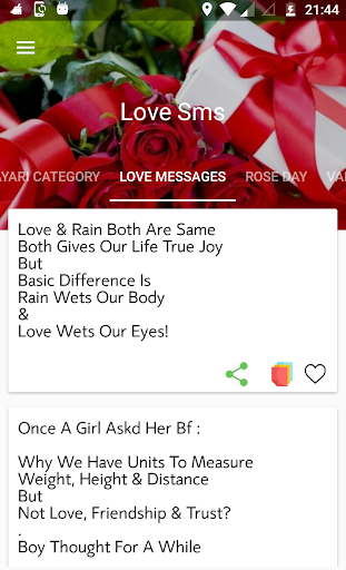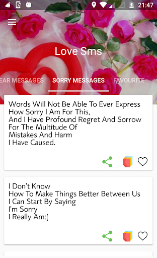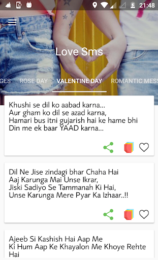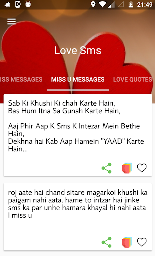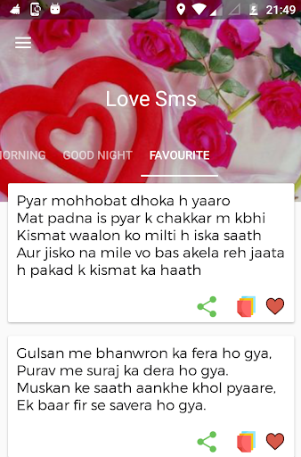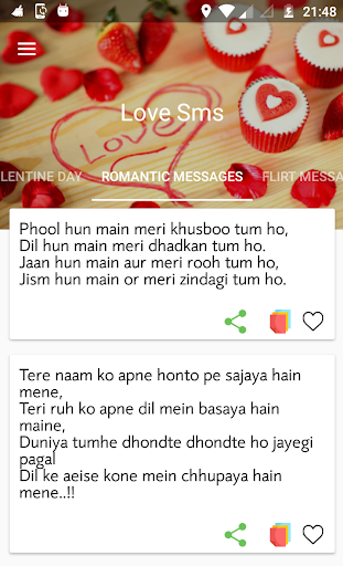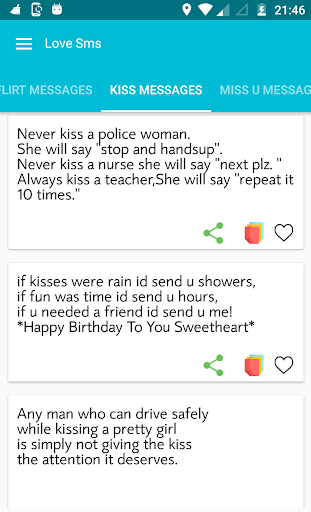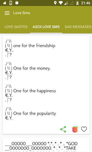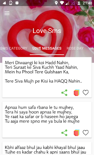 * Just one touch share and copy love sms message