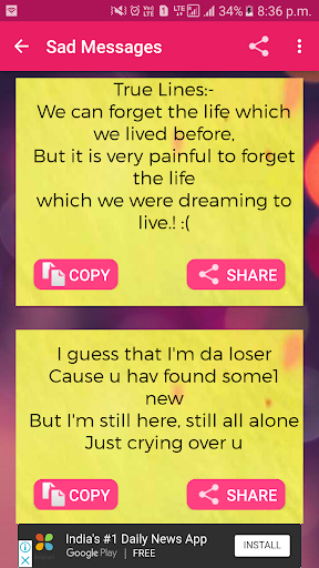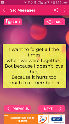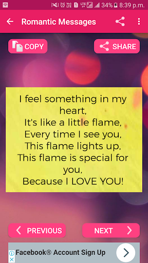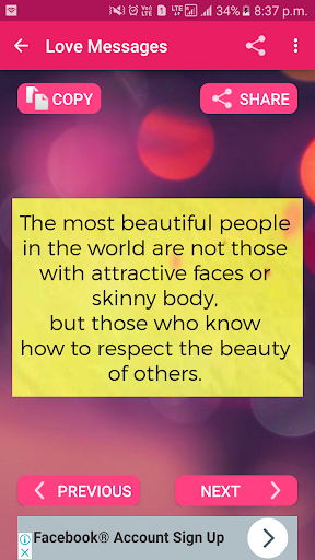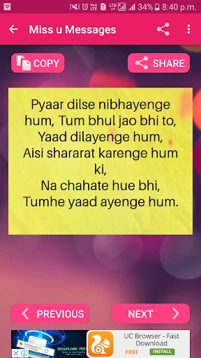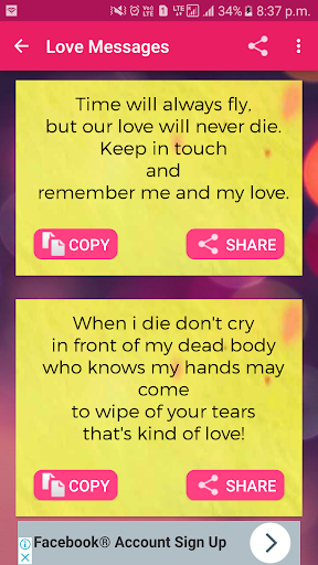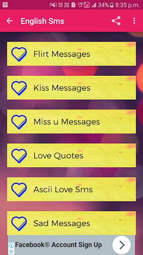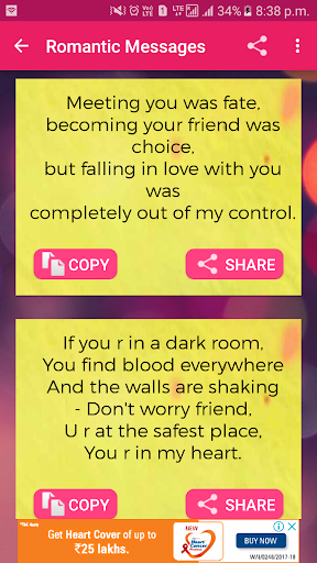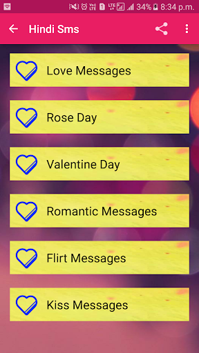 Love is one of the best feeling that human being can feel .so dont hide your feeling and start share with your love using this amazing collection of love sms messages app that will give you large collection and heart touching message .It is in both language english and hindi .