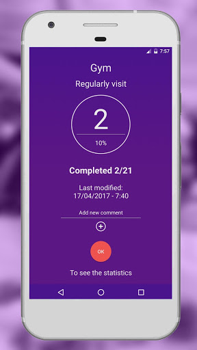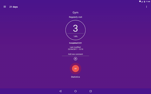 Each time you run you can leave any comment which is then displayed in the statistics of goals or habits. App 21 days can show detailed stats on the created goal or habit.