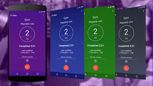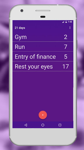 App 21 days is tracker habits. Helps keep track of your desired habits or to create new goals and to celebrate their fulfillment.