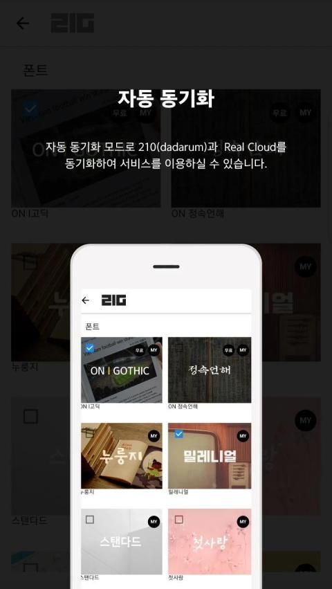 자동 동기화 모드로 210(dadarum)과 Real Cloud를 동기화하여 서비스를 이용하실 수 있습니다.