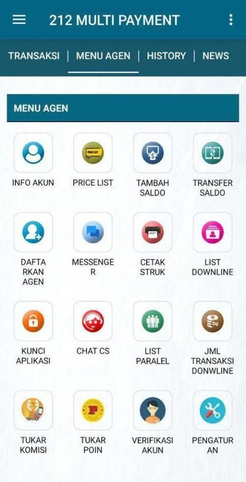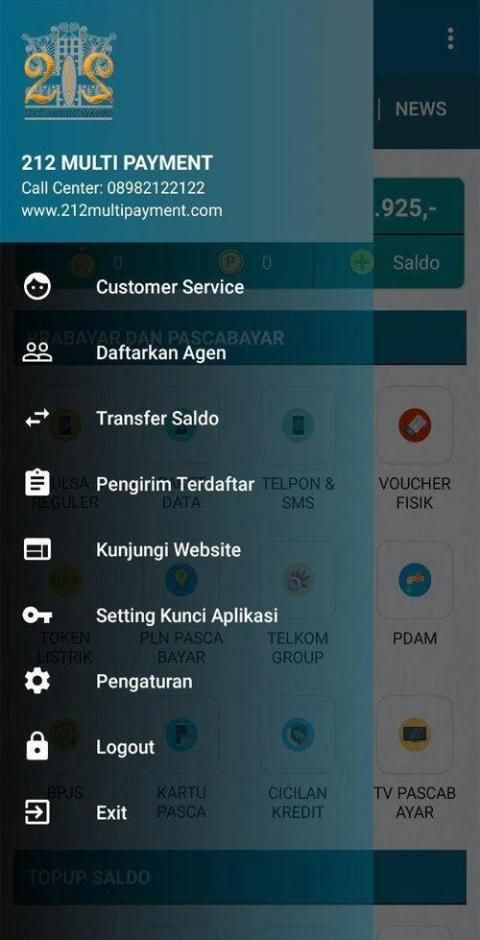 212 MULTI PAYMENT android application is a free mobile application for loyal members 212 MULTI PAYMENT wherever located. This application makes it easy for you to perform various transactions such as topping up credit, purchasing electricity tokens, paying postpaid bills, purchasing game vouchers, etc.