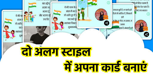Everybody celebrates Independence Day with joy, in school and colleges are congratulations to each other on 15th August. Today, on this occasion, you can make a card in the form of shayari or greeting message by writing your name with photo and which you can send to your friends and relatives. You can make also your own profile status by this photo frame app. You can share these wishes on any Social Sites easily.