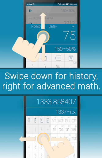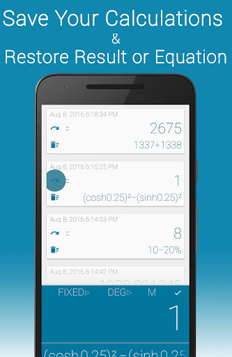 The app stores calculations in the built-in history, offers most important functions (trigonometric, exponential, ...) for scientific use in school, university or the office. You want to compute what a % discount saves you? No problem with the %-button. Forget about hitting the equal sign after each step to know intermediate results - the app directly shows you results automatically, while you type the calculation.