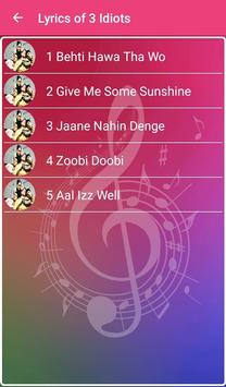 ''3 Idiots'' is the Songs Lyrics applications that is suitable in your phone and it's easy to use and free for you. Everything on this application is intended only for entertainment. Just search for any Movie Songs Lyrics and you're getting all the songs from 3 Idiots, that you're looking for.