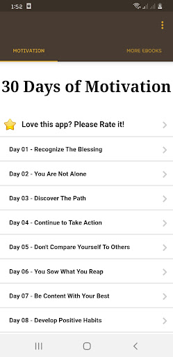 Get our Free 30 Days of Motivation - Daily Affirmations app. This app give you daily motivation and affirmations to guide you in a positive way throughout your day. A thirty day schedule of re-centering your mind and rejuvenating your heart.