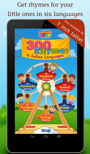300 Nursery Rhymes of India, a mix of most popular children's songs in Hindi, Bengali, Tamil, Kannada, Telugu & English. One app gives you nursery rhymes in your own language.