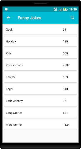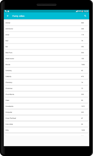 - We’ve classified the jokes in 54 categories so the app is easier to use: Yo Momma, Chuck Norris, Blonde, Best Puns, Riddles Answers, Fun Facts, Animal, Anti Humor, Artist, Bad, Bar, Black Humor, Camping, Celebrity, Clean, Comebacks, Computer, Cross The Road, Cute Jokes, Chemistry, Christmas, Chuck Norris, Dirty, Doctor, Drunks, Elderly, Family, Fart, Food, Funny, Geek, Holiday, Kids, Knock Knock, Lawyer, Legal, Little Johnny, Long Stories, Men-Women, Military, Mixed, Oafish, One Liners, Party, Pirate, Police, Politics, Pranks, Quotes, Racial, Redneck, Relationships, Religious, Sayings, Secretary, Shower Thoughts, Thanksgiving.