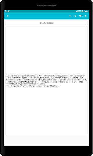 - If you like a joke, you can bookmark as “Favorite” the jokes of your liking or share it to your friends through SMS or via email, for example. In short, you can share the jokes through any program or app of your choice.