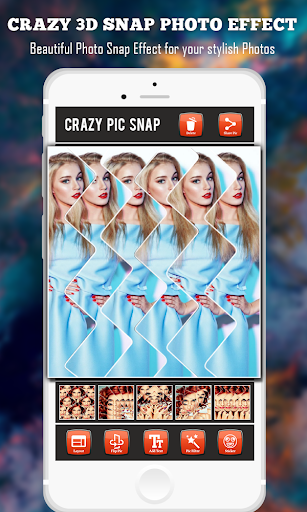 Crazy magic Effect is a powerful 3D photo editor for you with 3D magic photo and square function. You can make the photo square photo without cropping. And add the text and Emoji together withe magic pic.