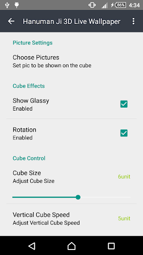 This 3D Hanuman Ji Live Wallpaper displays cubes of six images from selected image.