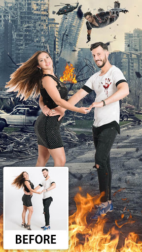 3D Movie Effect Photo with VFX Photo Editor, contains a lot of real looking stickers VFX such as bomb explosions, fire, light strokes, lightning thunders, UFO, zombies, and much more. It has more than 50 HD amazing backgrounds.
