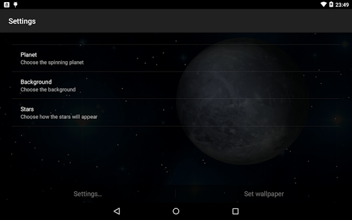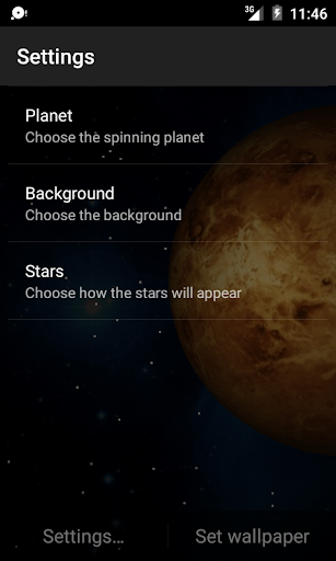 3D planet and starfield live wallpaper in smooth OpenGL.