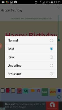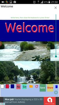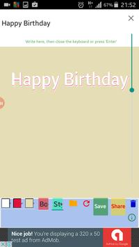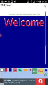 Write into white place, then close the keyboard or press 'Enter'. It will be written below as 3D text. Then save or share in sosial sites