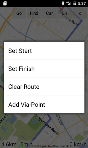 - Simple routes: long-press on the map to create route.