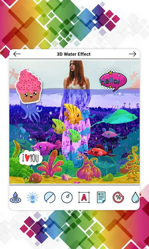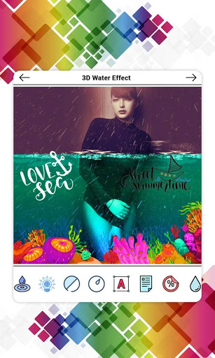 This app have a lot of 3D Water Effects Photo Editor Water Splash Picture, sticker, Emoji, typography and Color impact Frames. Edit your photos by exploitation this application.