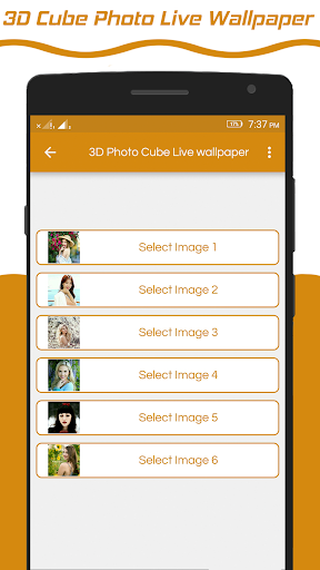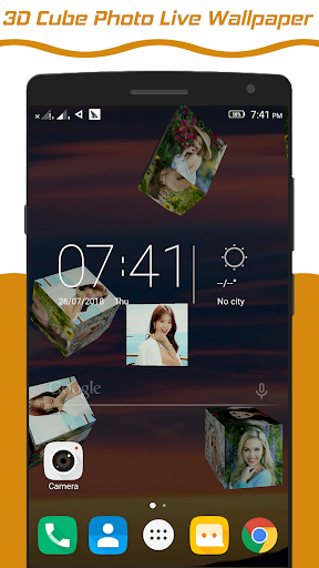 3D Photo Cube live wallpaper provides the different 3D cube live wallpaper. 3D Cube live wallpaper have six side and each side you set different photos from gallery.