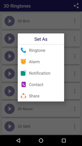 - Set as 3D ringtone for contact ringtone / alarm sound / notification sound/Default ringtone.
