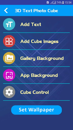 To creat your 3d text photo live wallpaper with stylish background images and to move you name in 3d logo style on your mobile screen. You can select the 6 images of your mobile gallery and make a moving cube photo live wallpaper with 3d text moving stylish font. You can see professional text design wallpaper editing features. Work on the photo to make in 3d text with photo live wallpaper.